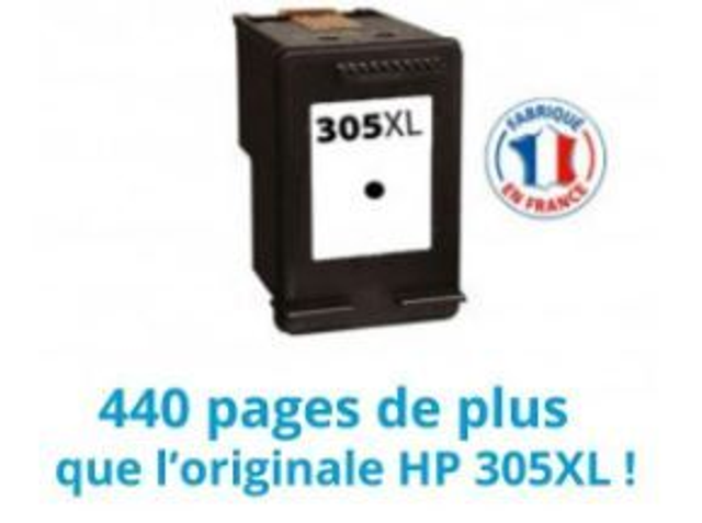 Cette cartouche d'encre noire HP 305XL - 3YM62AE compatible permet d'imprimer jusqu'à trois fois plus que la cartouche originale HP 305XL.