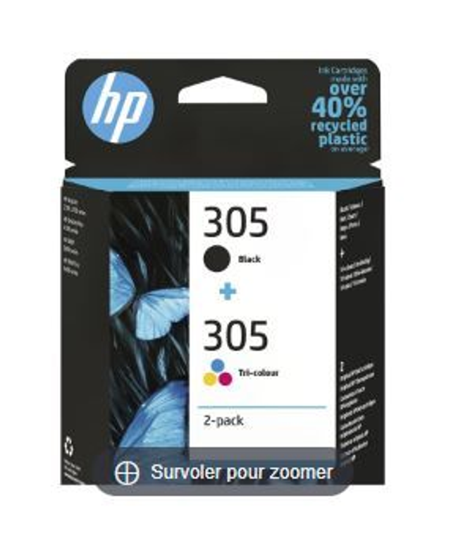 Description du produitHP 305 - pack de 2 - noir, couleur (cyan, magenta, jaune) - original - cartouche d'encreType de ProduitCartouche d'encreTechnologie d'impressionJet d'encreCouleur d'impressionNoir, couleur (cyan, magenta, jaune)